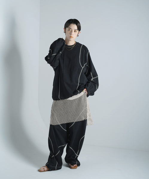 グレーにはネイビーのステッチ、ブラックにはベージュのステッチを採用し、細かい部分にもAphlotusらしいこだわりが感じられるスウェットパンツ。