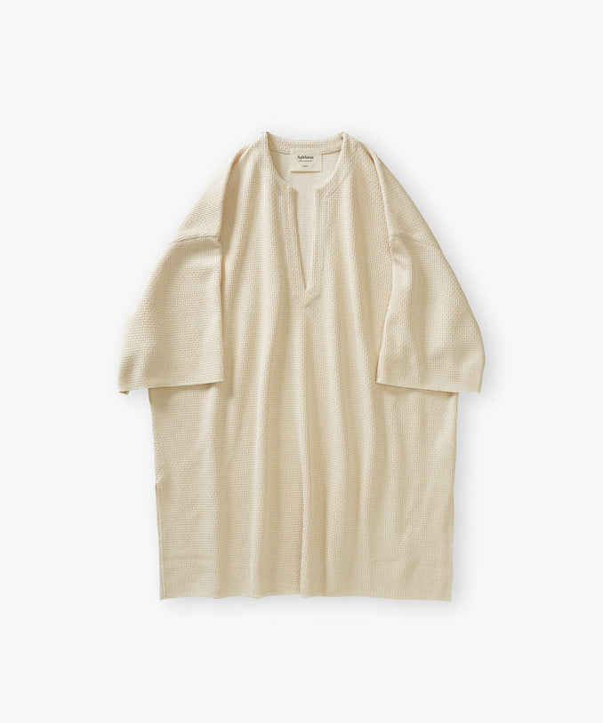 しっかりと長い丈に深めのキーネックが大人な雰囲気のカットソー。民族衣装であるクルタを都会的に落とし込んだ一着は、着るだけで雰囲気のあるコーディネートに。