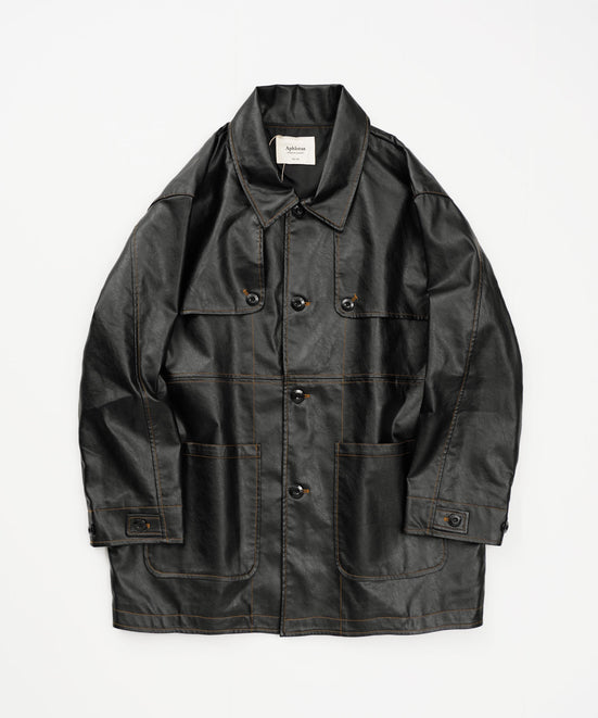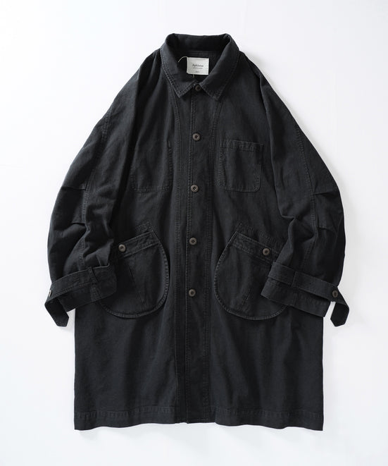 人気のアトリエコートSサイズを、身長170㎝のメンズが羽織るとこのようなサイズ感に。
