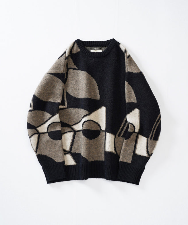 Wジャガード キュビズムトーン アート グラフィックニットはキュビズムにインスピレーションを受けたグラフィックデザインで