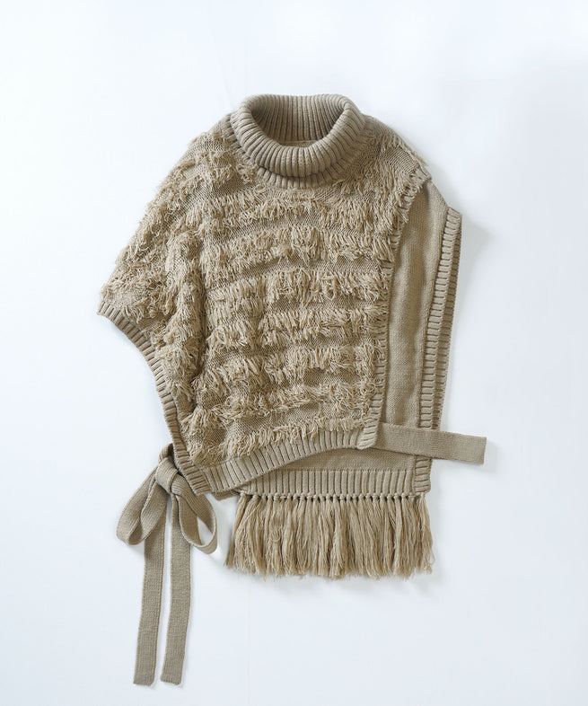 No4. 5G Cashmere Touch Asymmetric Hem Tassel Turtleneck Fringe Knit Vest