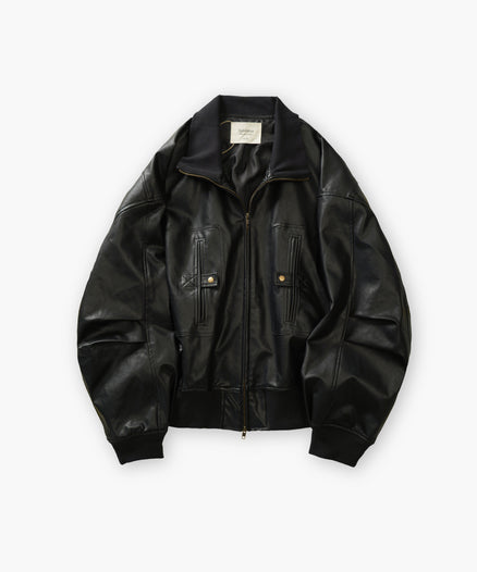 No4. Vintage-like Fake Leather 4-Pocket Volume Flight Blouson