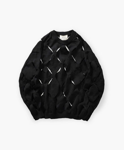 ジオメトリック パターン 穴あきクルーネック シアーニットは