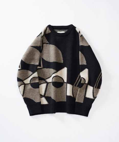 Wジャガード キュビズムトーン アート グラフィックニットは