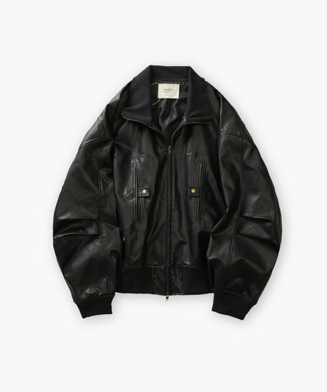 No3. Vintage-like Fake Leather 4-Pocket Volume Flight Blouson