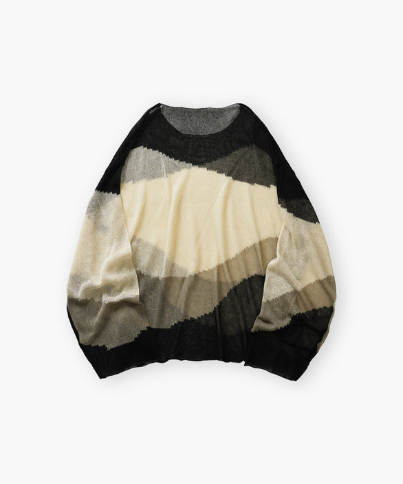 No2. Crew Neck Loop Yarn Gradient Dyeing See-through LS Knit