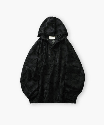 No5. Fringe Jacquard Lace-up Sheer Pull Parka