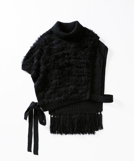 No4. 5G Cashmere Touch Asymmetric Hem Tassel Turtleneck Fringe Knit Vest