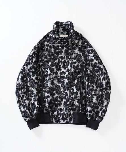 ボタニカル柄のジャガード生地を採用。柄部分は起毛感のあるモール糸となっており、秋冬感を演出。