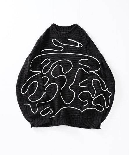 5位 Wジャガード キュビズムトーン アート グラフィックニット。