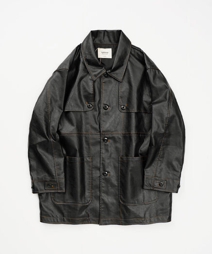 3位 フェイクレザー ウエスタンヨーク 配色ステッチ ミドル丈 カーコート。