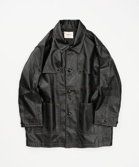 4位 フェイクレザー ウエスタンヨーク 配色ステッチ ミドル丈 カーコート。