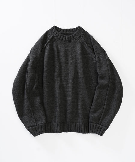 1位 ハンド編みライク アウトリンキング ラグランスリーブ クルーネックニット。