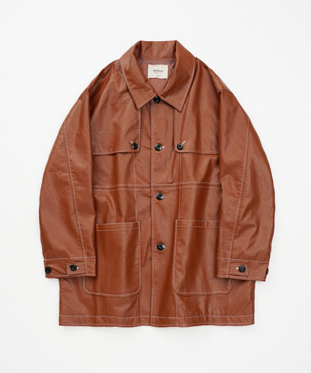 3位 フェイクレザー ウエスタンヨーク 配色ステッチ ミドル丈 カーコート。