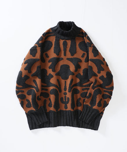 4位 Wパイルジャガード バロックパターン ハイネックニット