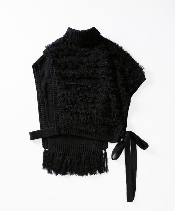 No3. 5G Cashmere Touch Asymmetric Hem Tassel Turtleneck Fringe Knit Vest