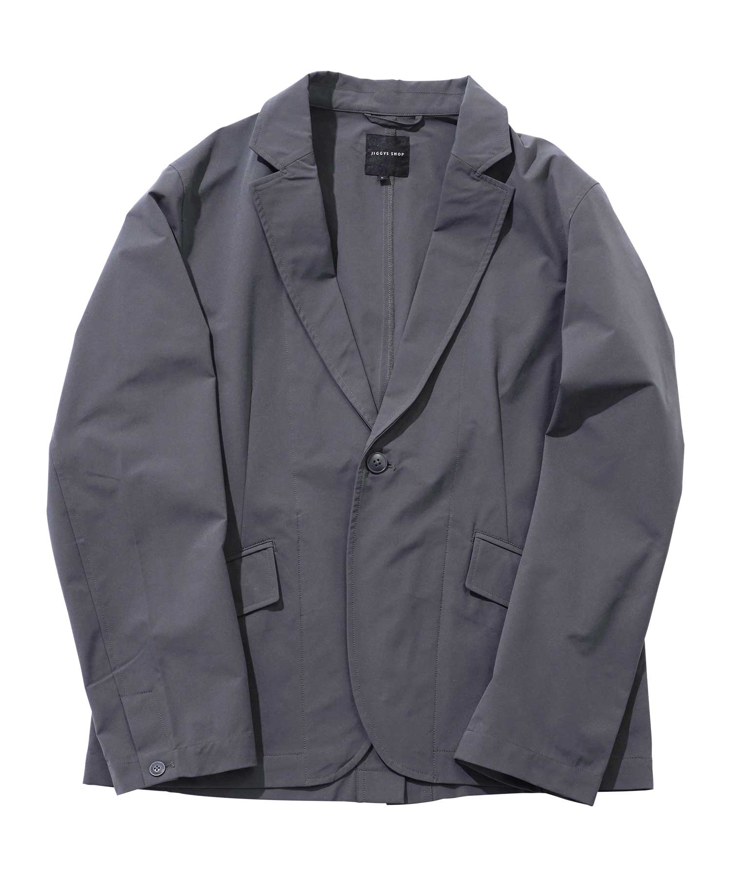 やや細身のスッキリとしたシルエットながら、肩周りに十分なゆとりを持たせて動きやすさを確保。袖口は開閉可能で、袖まくりがしやすく、背中には深めのベントが配置され、座っても美しく見える設計です。太めのパンツとの組み合わせでもシルエットが崩れず、フラップポケット付きで機能性とスタイルを両立。ビジネスからカジュアルまで幅広いシーンにマッチし、レイヤードも容易なデザインが特徴です。