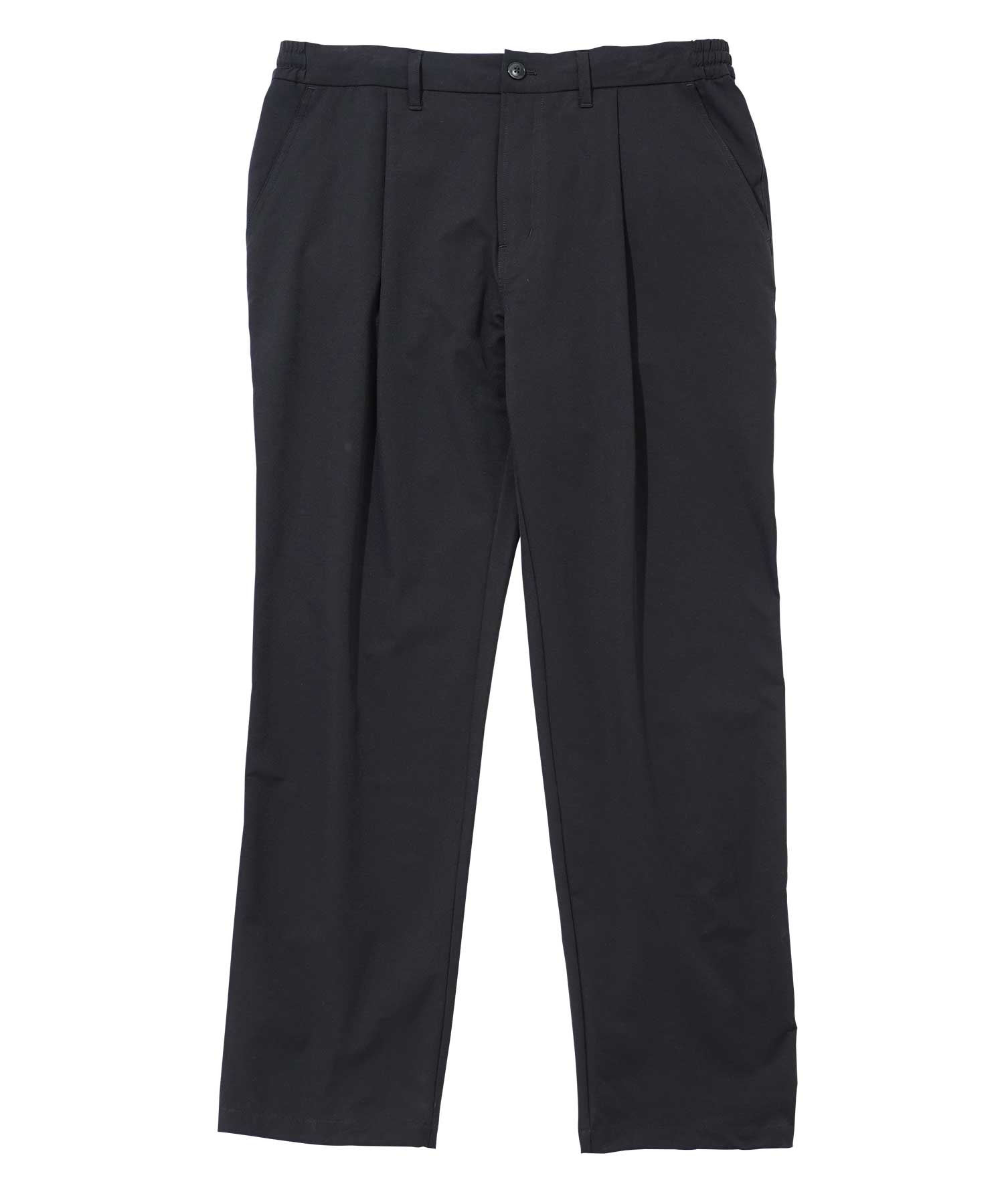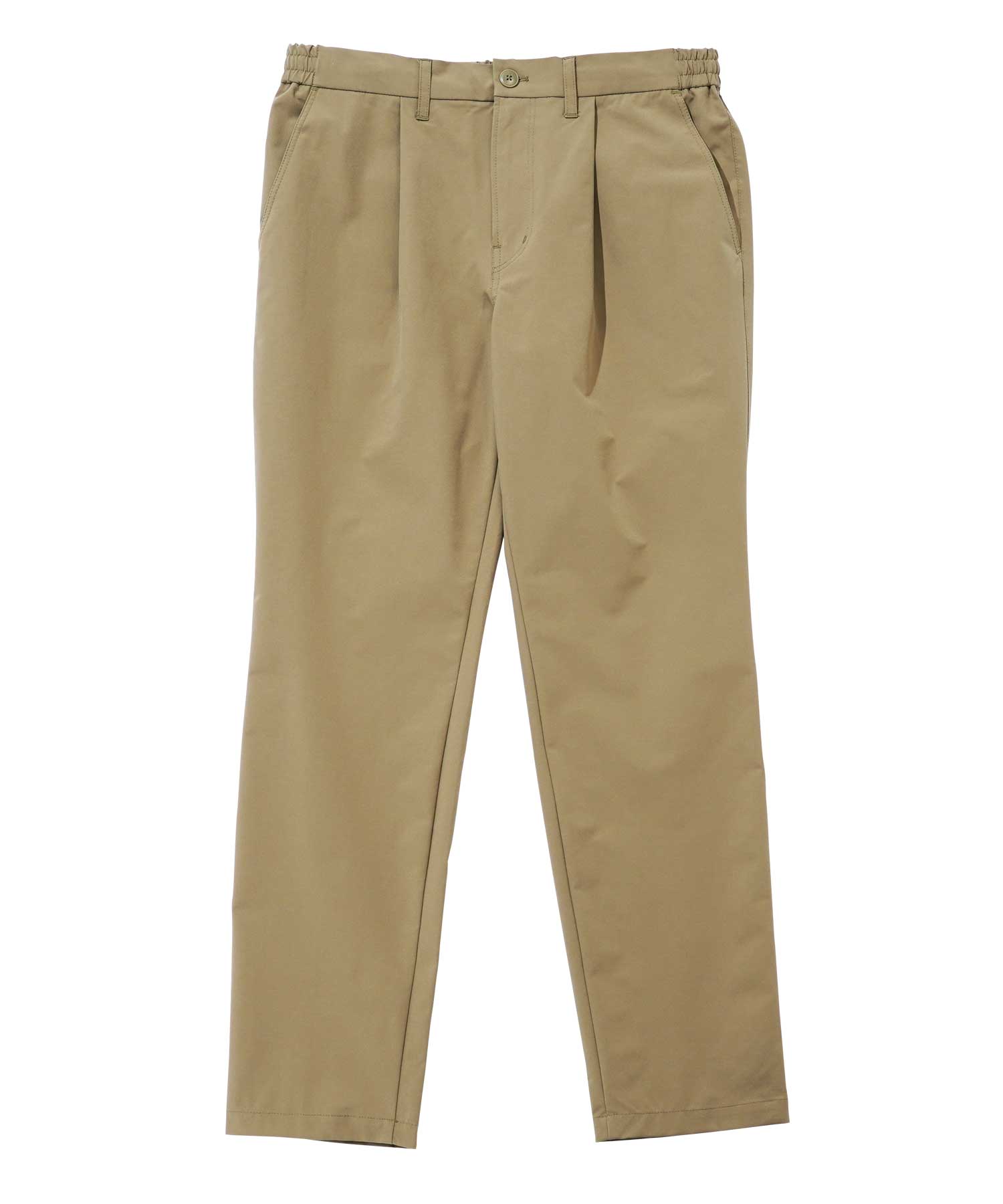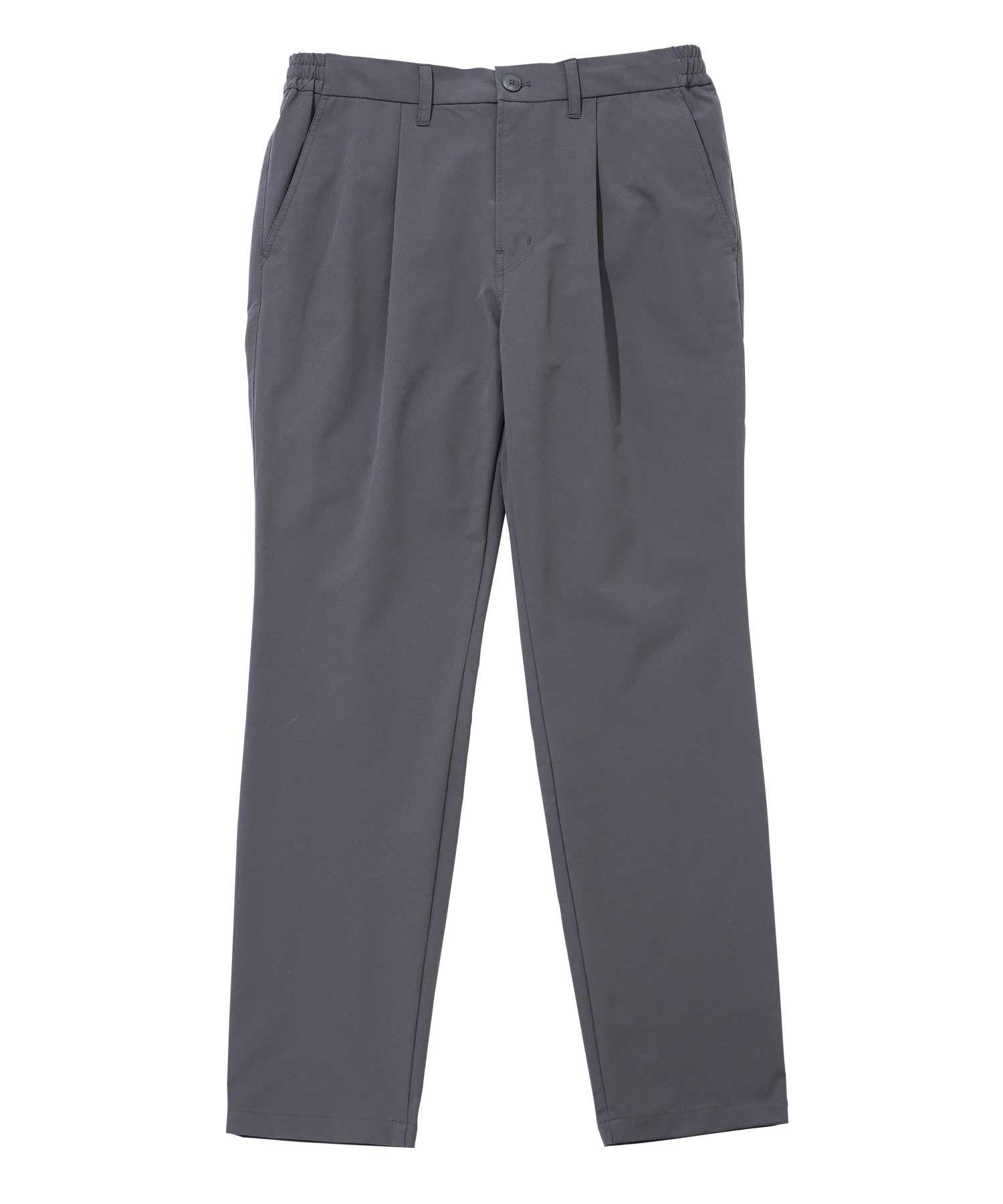 前面はドレスパンツに似た洗練された印象を与えつつ、後ろ側にはゴムが入っているため、イージーパンツの快適さを体験できます。 ウエストの前側には貫通のホールが設けられ、カジュアルからビジネス寄りのスタイルへの調整が可能です。